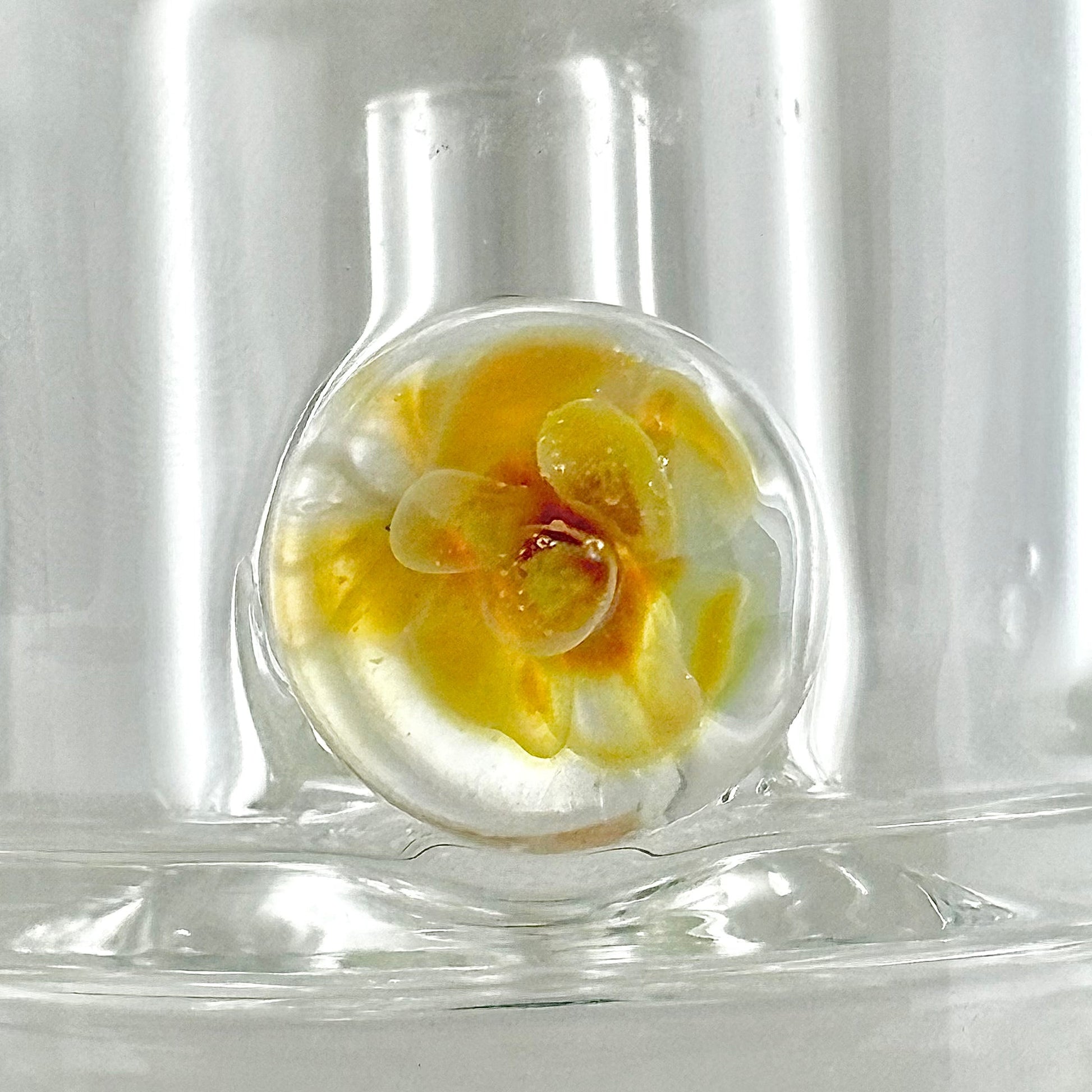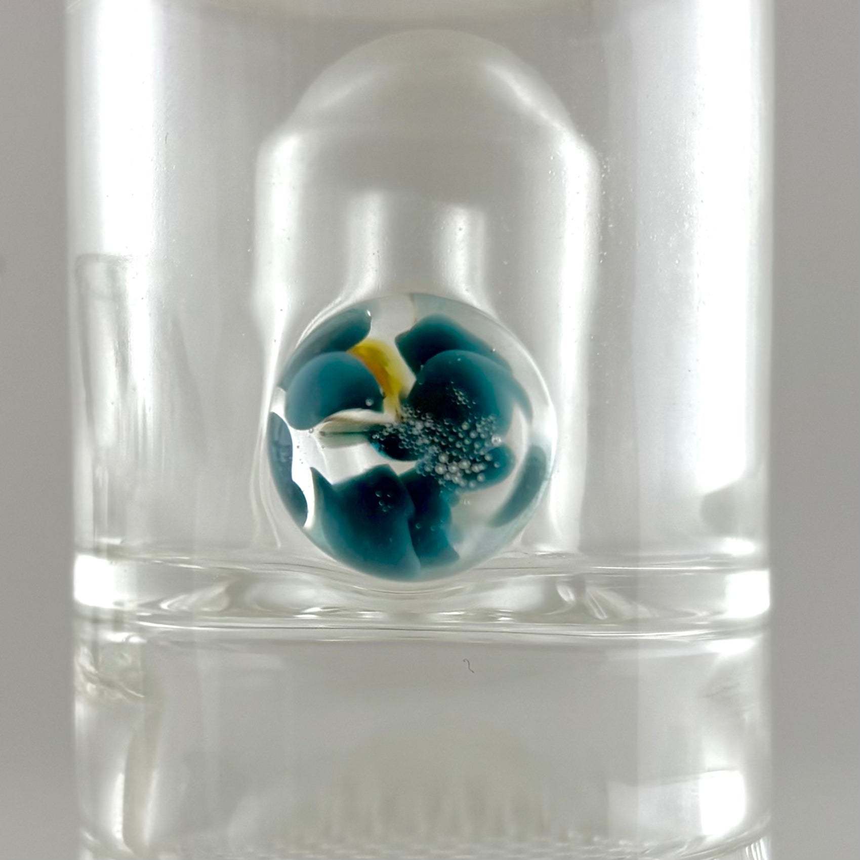 What makes this piece truly stand out are the two custom glass pendants embedded in the chamber, adding both visual appeal and artistic flair. The 14mm joint size makes it compatible with a wide range of bowls and accessories, ensuring versatility for your setup.